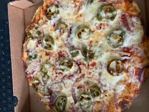 Ich habe mir die Pizza "Marko" mit Salami, roten Zwiebeln, Jalapenos und Gouda bestellt.